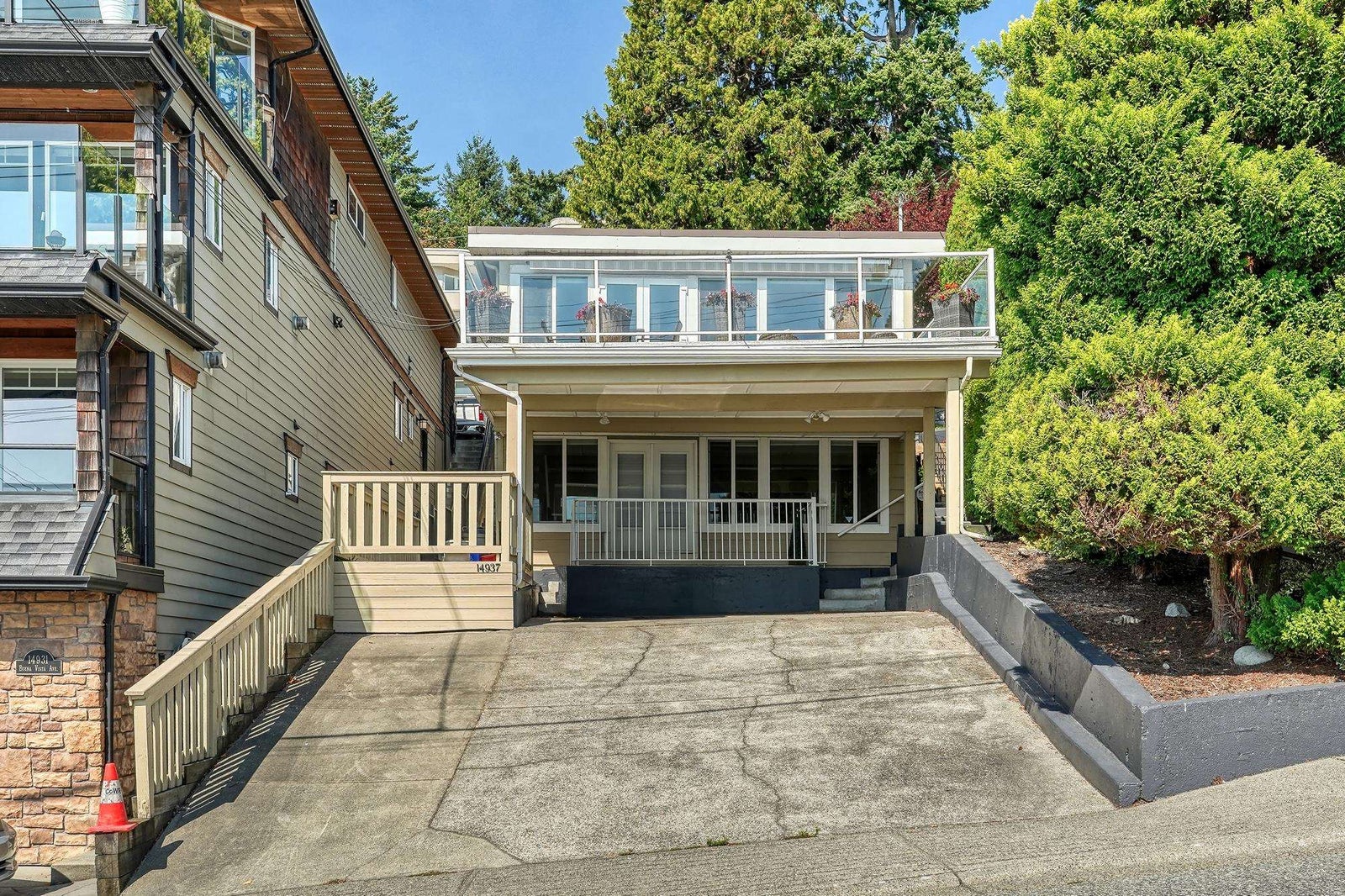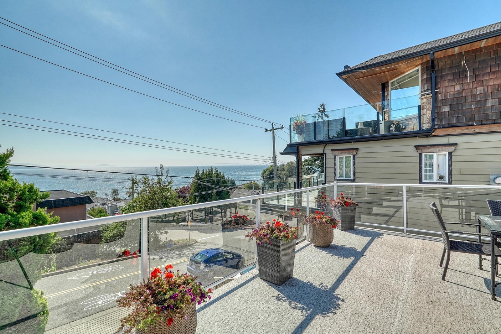 Calling all Sunseekers! Beautiful OCEAN and White Rock PIER views. Well maintained and fully updated 4 bed 3 bath home with many possibilities. The main level has lots of windows with an open concept to take advantage of the picturesque view. All opening to the 21ft x 19ft deck, an entertainers dream. The spacious primary bedroom offers a two piece ensuite. The walkout basement features an additional kitchen as well as laundry. Two large bedrooms down with its own private deck. Lane access with additional parking. A/C unit + new roof. Steps to the beach and all of the fantastic restaurants along Marine Drive. Views from all levels. Nothing to do, turnkey property. Great present day value and future potential! Book your private viewing. OPEN: Sat. Sept.27th 1-3pm